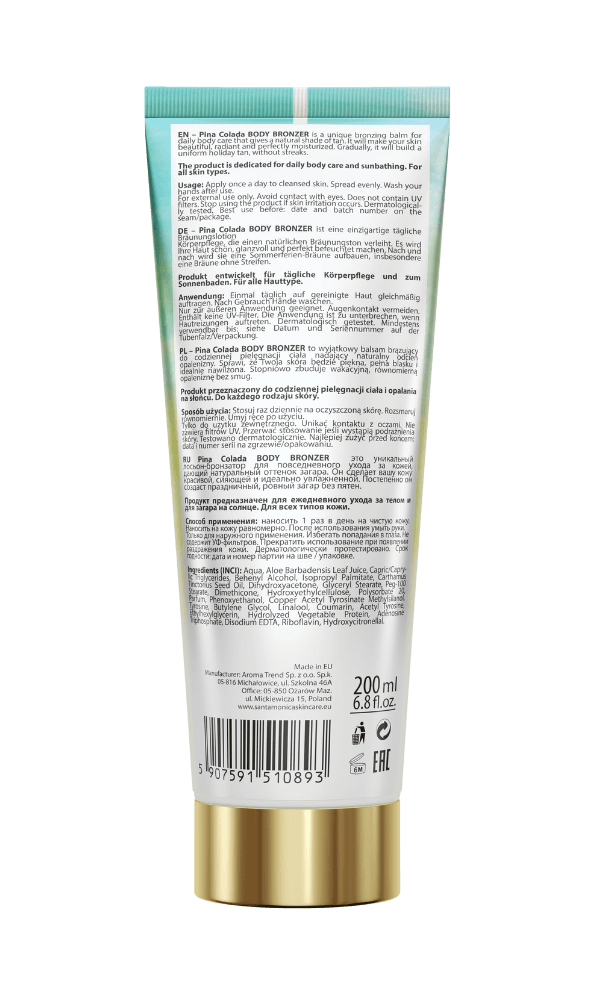 Balsam brązujący Piña Colada w doskonałej harmonii ze skórą troszczy się nie tylko o ciepłe brązowe tony, ale również nawilżenie i odżywienie skóry normalnej i suchej.