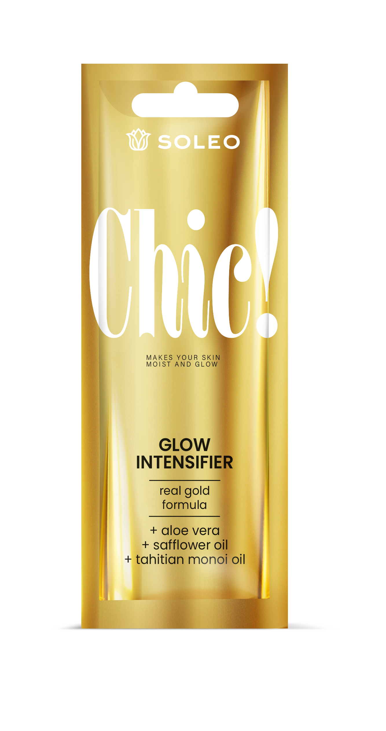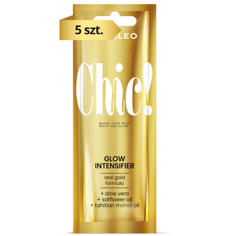 Chic! Silnie nawilżający przyspieszacz opalania z drobinkami złota. Idealny do twarzy i ciała. Wyjątkowa formuła zapewnia szybki efekt opalonego ciała. Chic! Zakochasz się w pięknej, opalonej i pełnej blasku skórze.