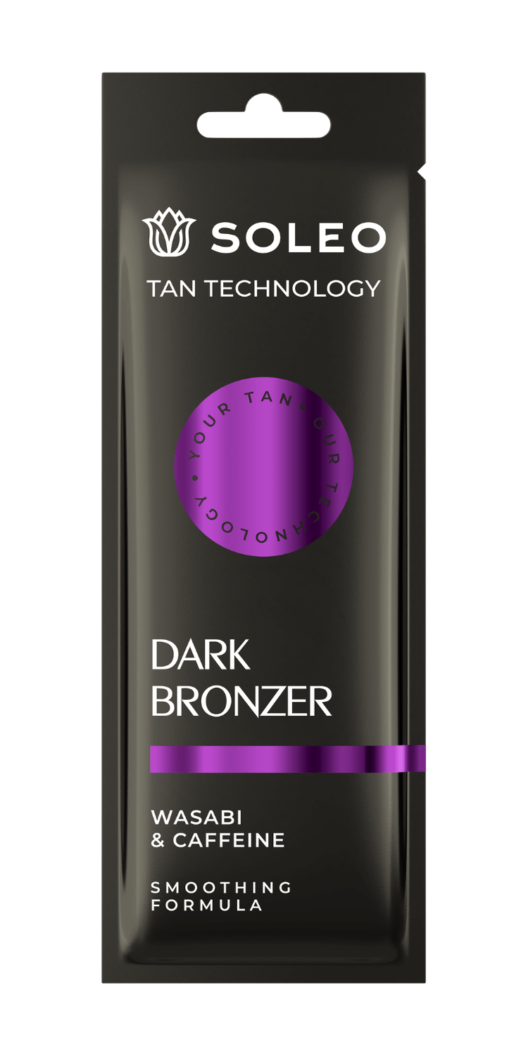 SOLEO TAN TECHNOLOGY Dark Bronzer to sposób na efektowne pogłębienie koloru opalenizny i kroku ku przyszłości – efekt wygładzający skórę. Kosmetyk łączy wyjątkowe składniki pielęgnujące – wasabi i kofeinę, dzięki którym skóra nabiera promiennego blasku. Potężna dawka składników aktywnych pozwala osiągnąć intensywną opaleniznę, zapewniając jej wyjątkową gładkość oraz długotrwałe nawilżenie.