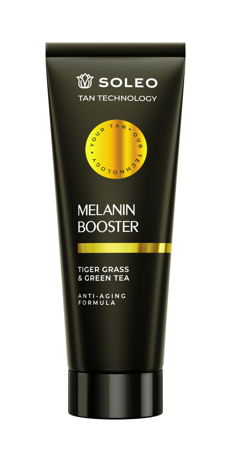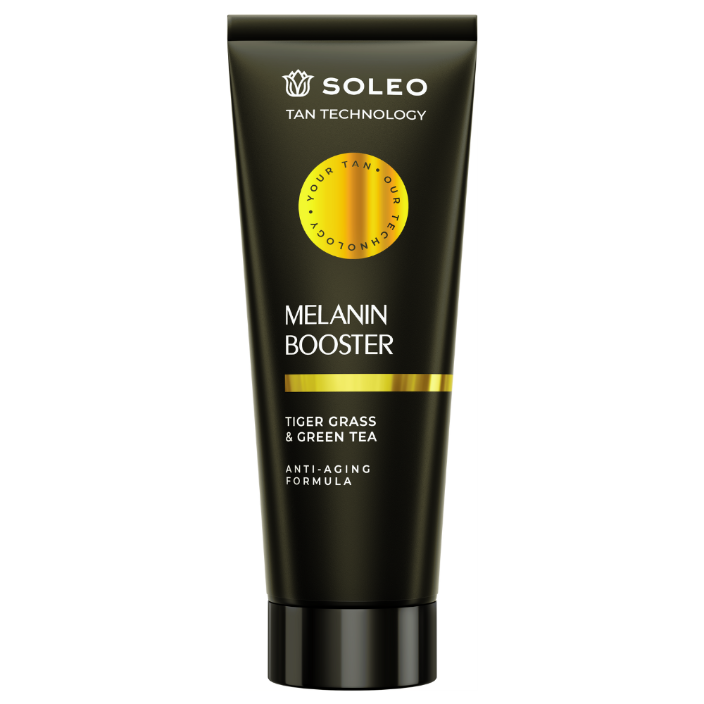 SOLEO TAN TECHNOLOGY Melanin Booster to innowacyjny sposób na szybkie i efektywne opalanie. Zawarte w produkcie składniki aktywne wspierają proces opalania poprzez stymulację produkcji melaniny odpowiedzialnej za powstawanie opalenizny. Dodatkowe składniki pielęgnujące – trawa tygrysia oraz ekstrakt z zielonej herbaty – wykazują działanie przeciwstarzeniowe, niwelują oznaki starzenia się skóry poddawanej regularnej sesji opalania.