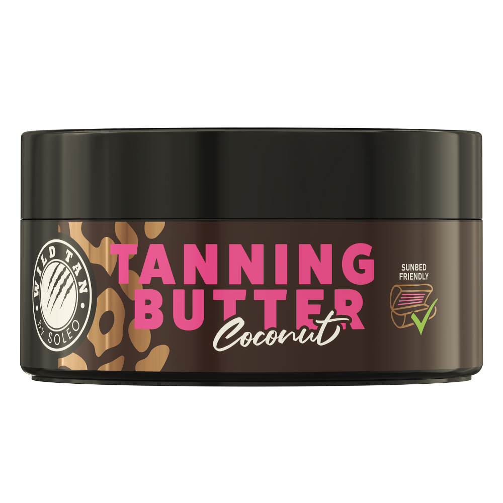 Coconut Tanning Butter marki Wild Tan jest wzbogacony olejem kokosowym i masłem kakaowym, które głęboko odżywia i nawilża skórę. Jego bogata, kremowa formuła zapewnia jedwabiście gładkie wykończenie, przygotowując skórę do szybszej i bardziej równomiernej, muśniętej słońcem opalenizny. Produkt jest przystosowany do korzystania z solarium, dzięki czemu doskonale nadaje się do stosowania w solariach bez ryzyka uszkodzenia sprzętu.