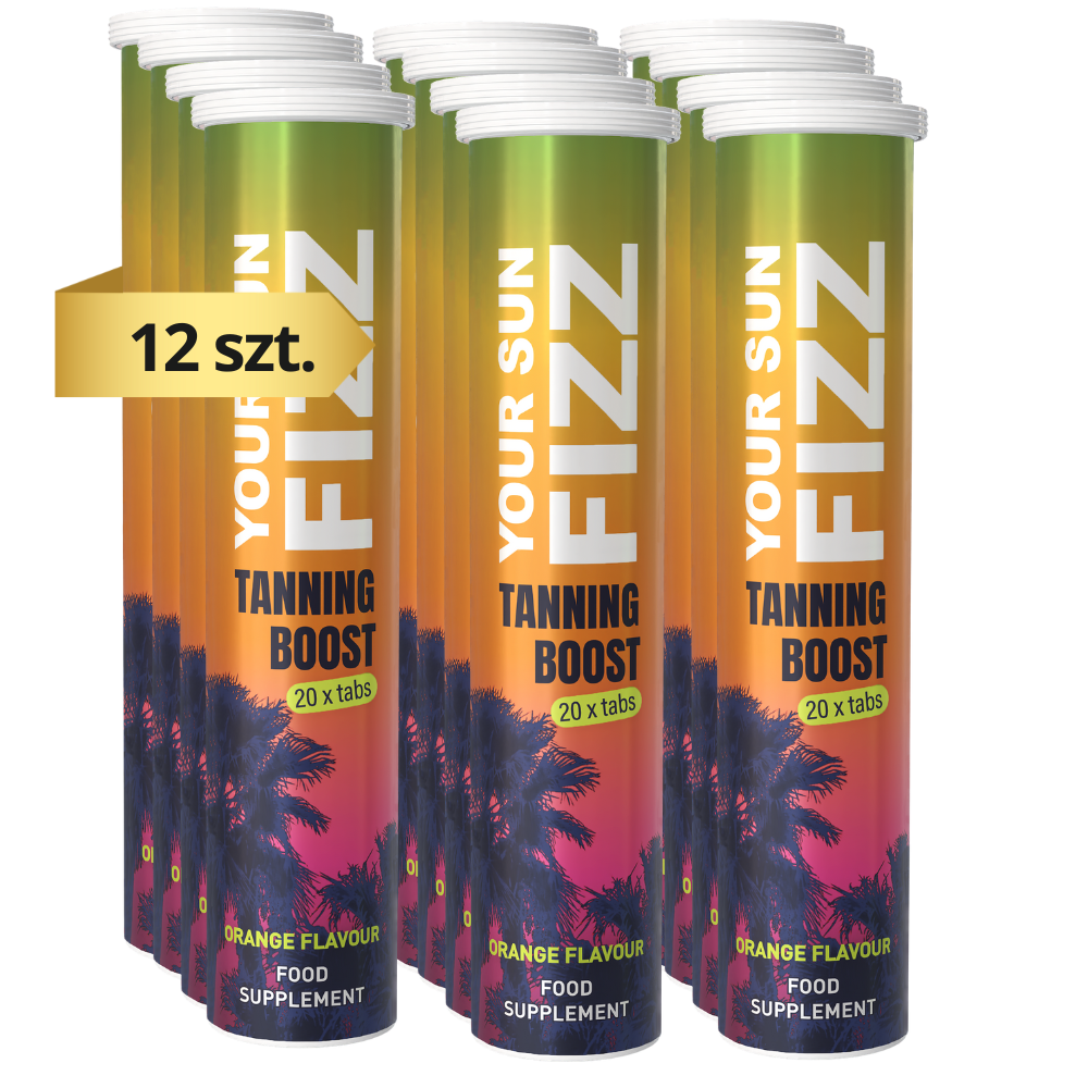 Your Sun Fizz to suplement diety w formie tabletek musujących, stworzony z myślą o wsparciu zdrowej kondycji skóry oraz uzyskaniu równomiernej i długotrwałej opalenizny. Zawarte w nim witaminy i składniki aktywne odżywiają skórę, poprawiają jej koloryt i wspomagają nawilżenie.